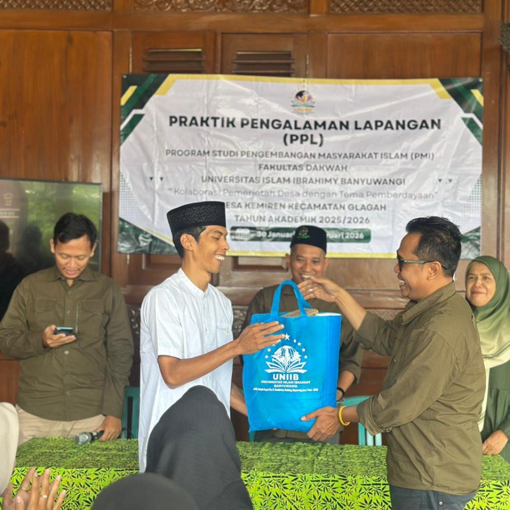 BANYUWANGI — Praktik Pengalaman Lapangan (PPL) Mahasiswa Program Studi Pengembangan Masyarakat Islam (PMI), Fakultas Dakwah, Universitas Islam Ibrahimy Banyuwangi (UNIIB) resmi ditarik setelah melaksanakan pengabdian selama 30 hari di Desa Kemiren. Kegiatan yang mengusung tema pemberdayaan masjid tersebut ditutup dengan seremoni sederhana namun khidmat, ditandai dengan penyerahan cinderamata kepada pihak desa. Penarikan ini dilaksanakan pada, Kamis (26/2/26) di desa Kemiren.